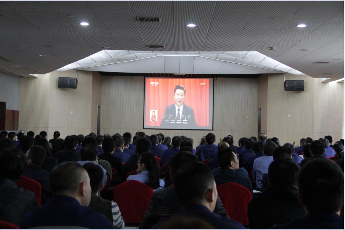 新誉集团党委书记戈亚琴带领集团全体党员和中高层领导,在第一会议室收看了本次大会的开幕盛况。