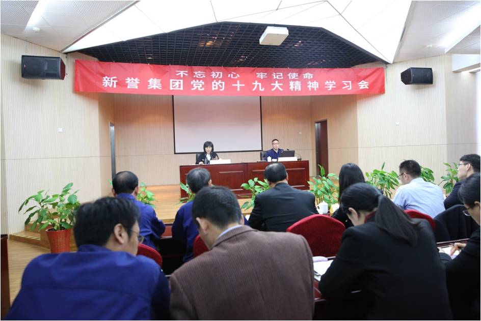 为认真学习宣传贯彻党的十九大精神,把党员、干部和员工的思想统一到党的十九大精神上来,11月6日下午,新誉集团党委召开了 “不忘初心、牢记使命”党的十九大精神学习会,集团党委书记戈亚琴主持会议,集团全体党员和中高层领导以及党建结对共建单位的代表共200余人参加。大会邀请了常州市委党校李红利教授作了党的十九大精神辅导报告。