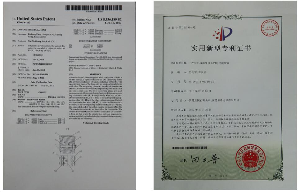JHFG系列钢铝复合导电轨运用独特的焊接技术使钢带和铝轨完美复合,具有结合力大、接触电阻小和防腐能力强等优点。经过10年的努力,公司先后开发出JHFG18T、JHFG18A、JHFG16T和JHFG16A四款产品,截止目前已经获得授权发明专利2项、美国发明专利1项、实用新型专利2项以及外观专利1项。同时作为行业引领者之一,我们还参与了住房和城乡建设部起草的CJ/T 414-2012《城市轨道交通钢铝复合导电轨技术要求》标准的编制工作。