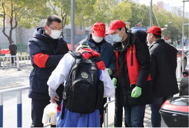 武进国家高新区商会会长,新誉集团党委书记、副总裁戈亚琴走访慰问园区部分疫情防控点,表达对一线人员日夜坚守的关爱与感谢。南夏墅街道党工委书记周文彬,高新区商会秘书长、党群工作部部长陈杰陪同。